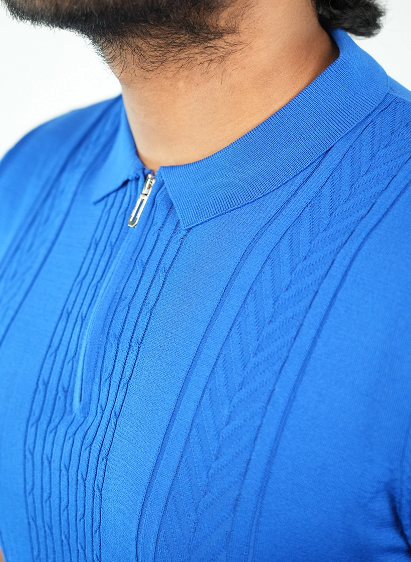 Men’s Cobalt Blue Textured Quarter-Zip Polo